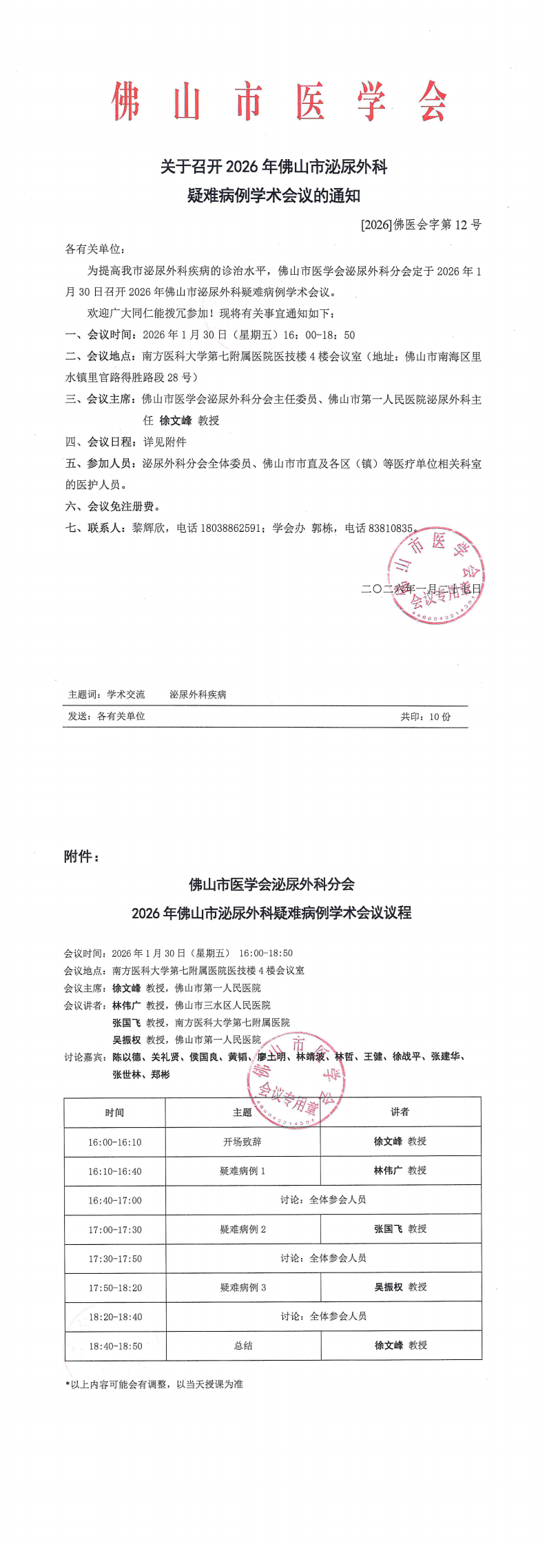 关于召开2026年佛山市泌尿外科疑难病例学术会议的通知