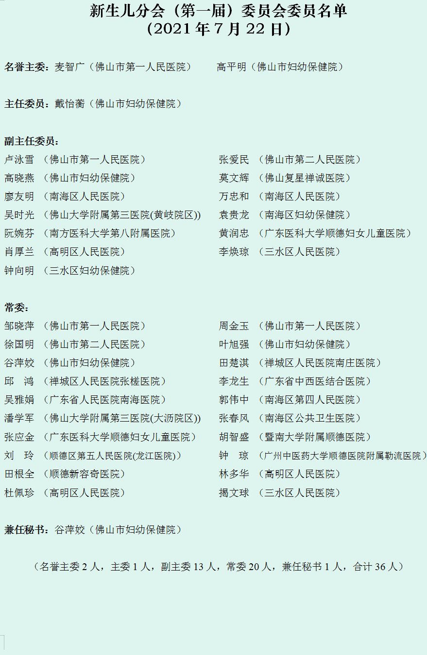 新生儿分会(第一届)委员会委员名单(2021年7月22日)NEW!