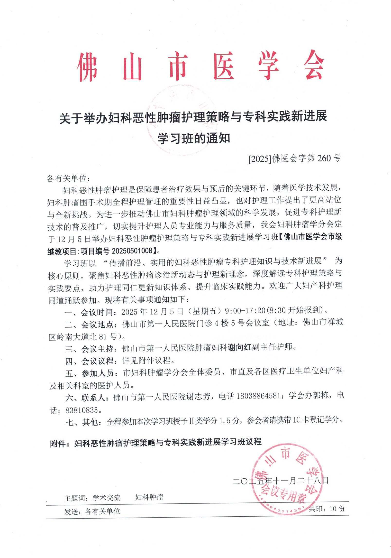 关于举办妇科恶性肿瘤护理策略与专科实践新进展学习班的通知