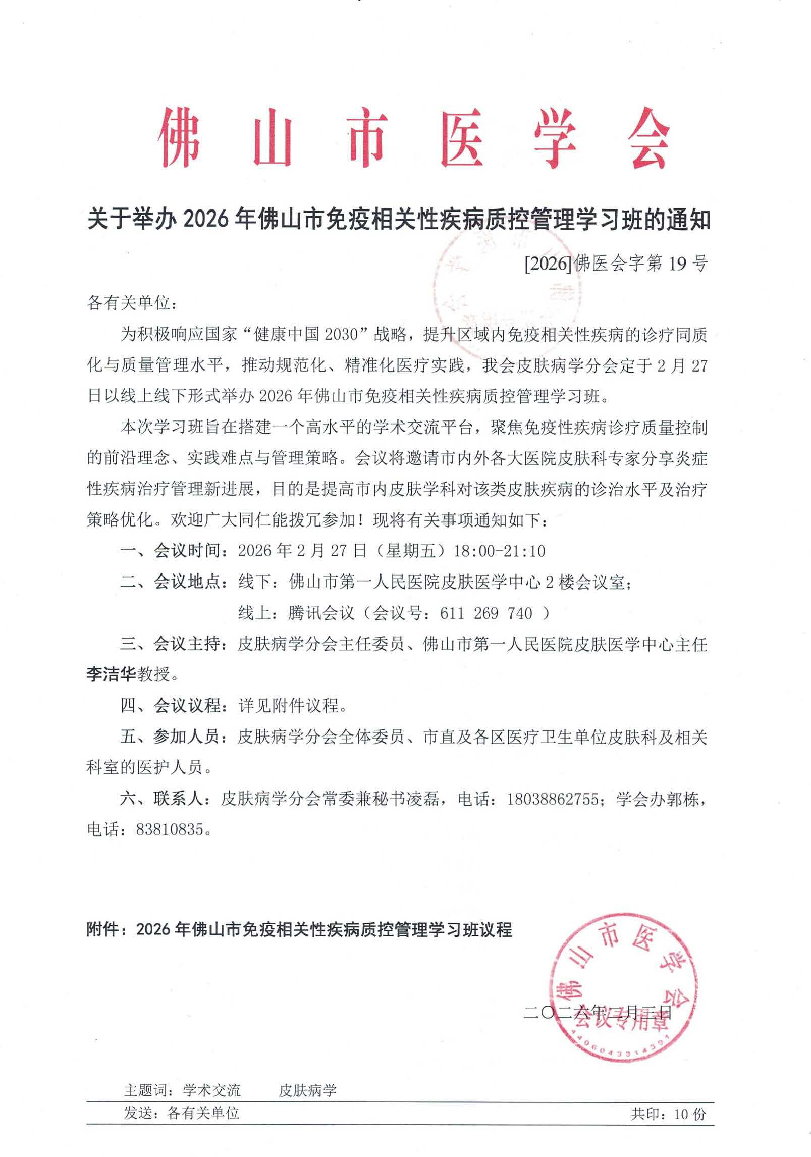 关于举办2026年佛山市免疫相关性疾病质控管理学习班的通知