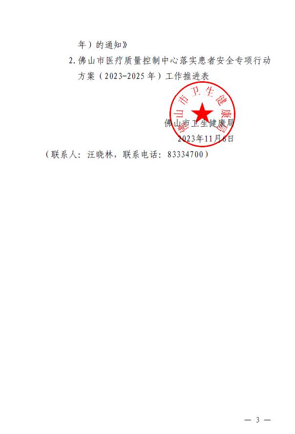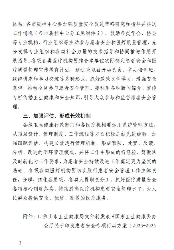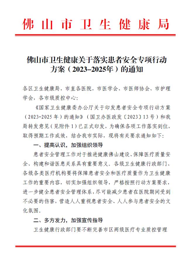 转发《佛山市卫生健康局关于落实患者安全专项行动方案(2023-2025年)的通知》