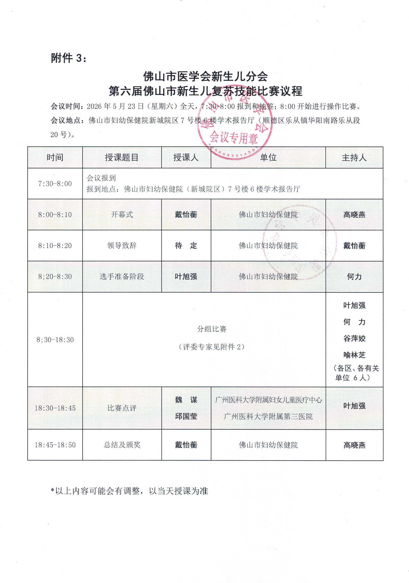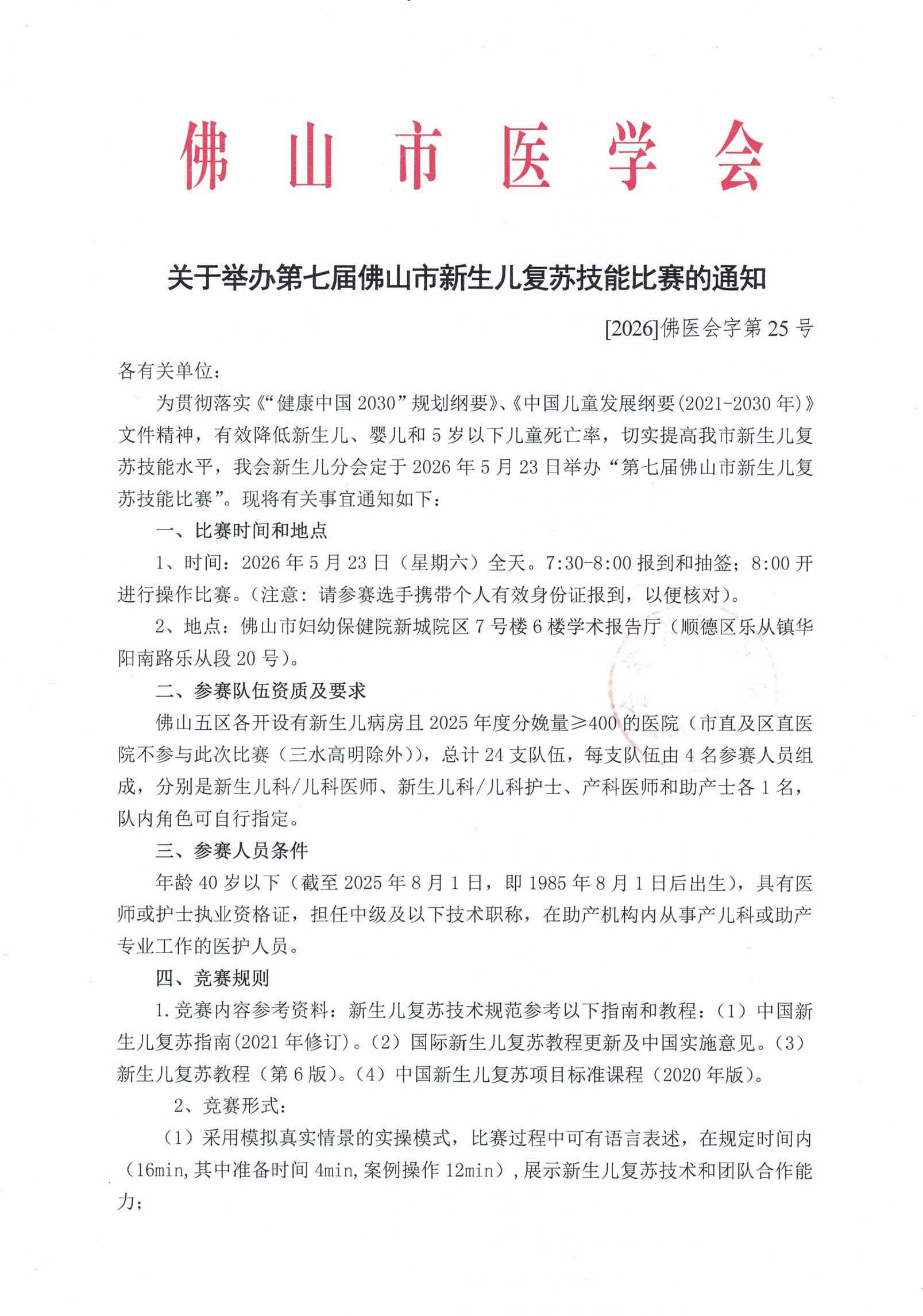 关于举办第七届佛山市新生儿复苏技能比赛的通知