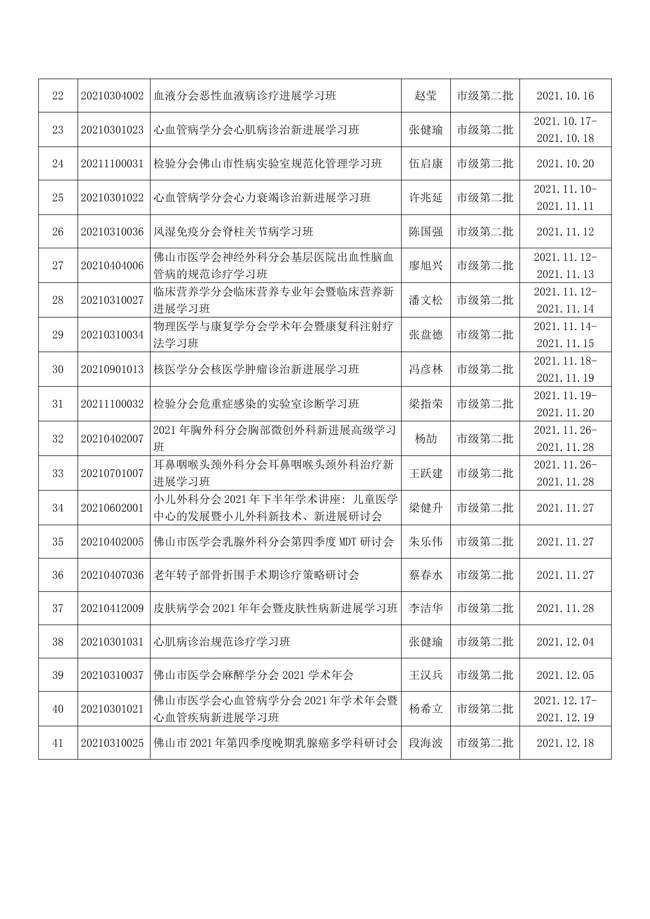 佛山市医学会2021年市级继续医学教育项目一览表