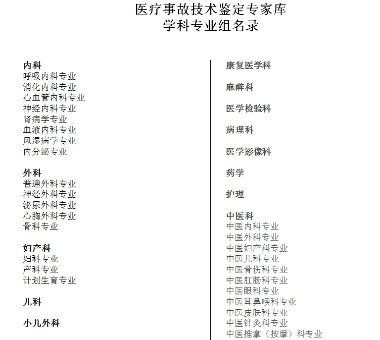 医疗事故技术鉴定专家库学科专业组名录(试行)